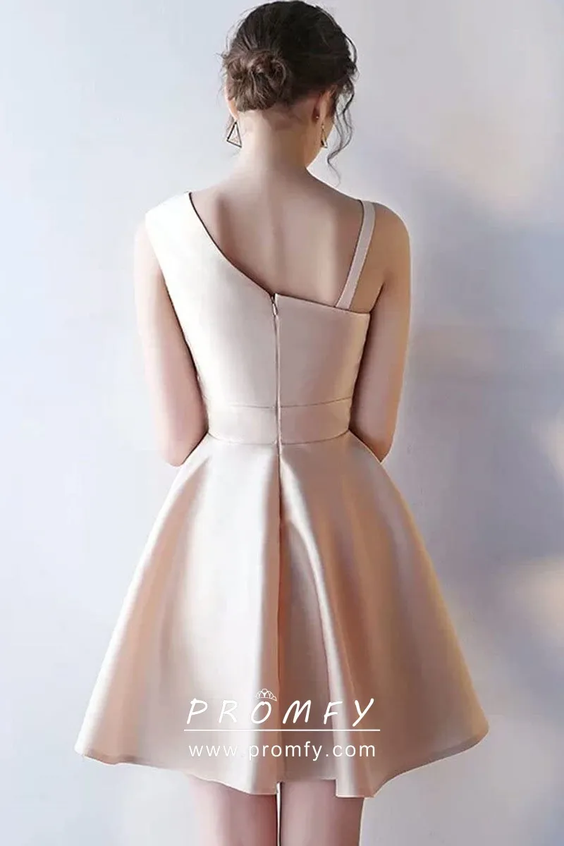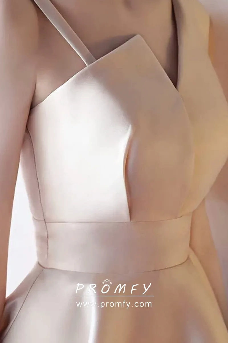 Asymmetrical Champagne Nude Satin Short Party Dress