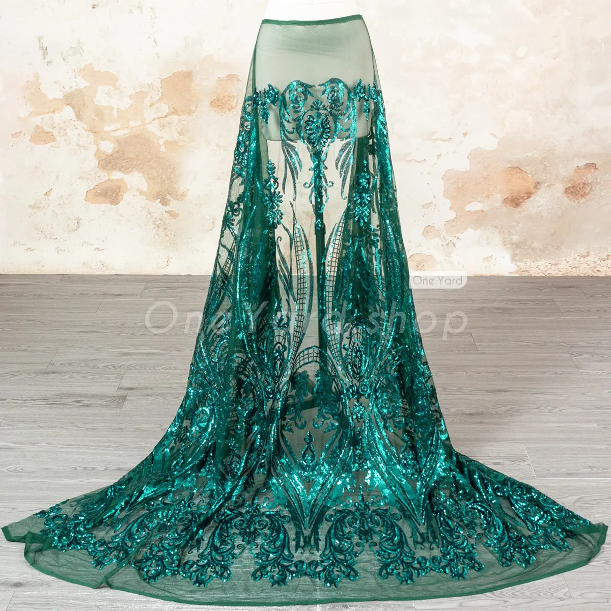 We select high-quality satin, tulle, beads, lace, etc. fabrics from OneYard to create each dress.