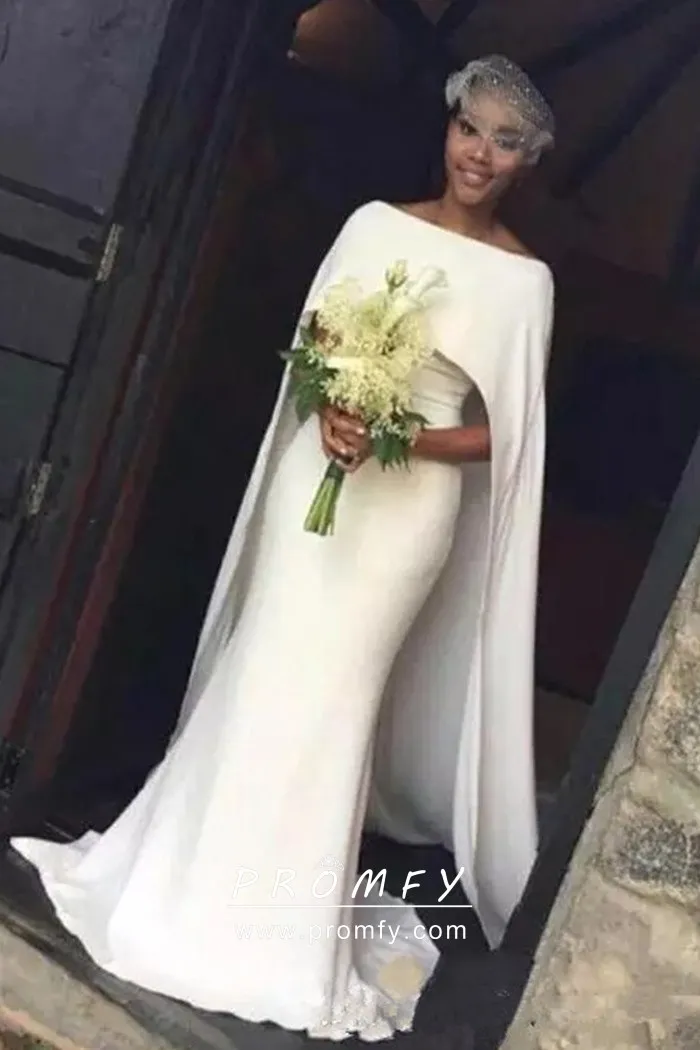 Grecian Style Caped Boat Neck Mermaid Wedding Gown