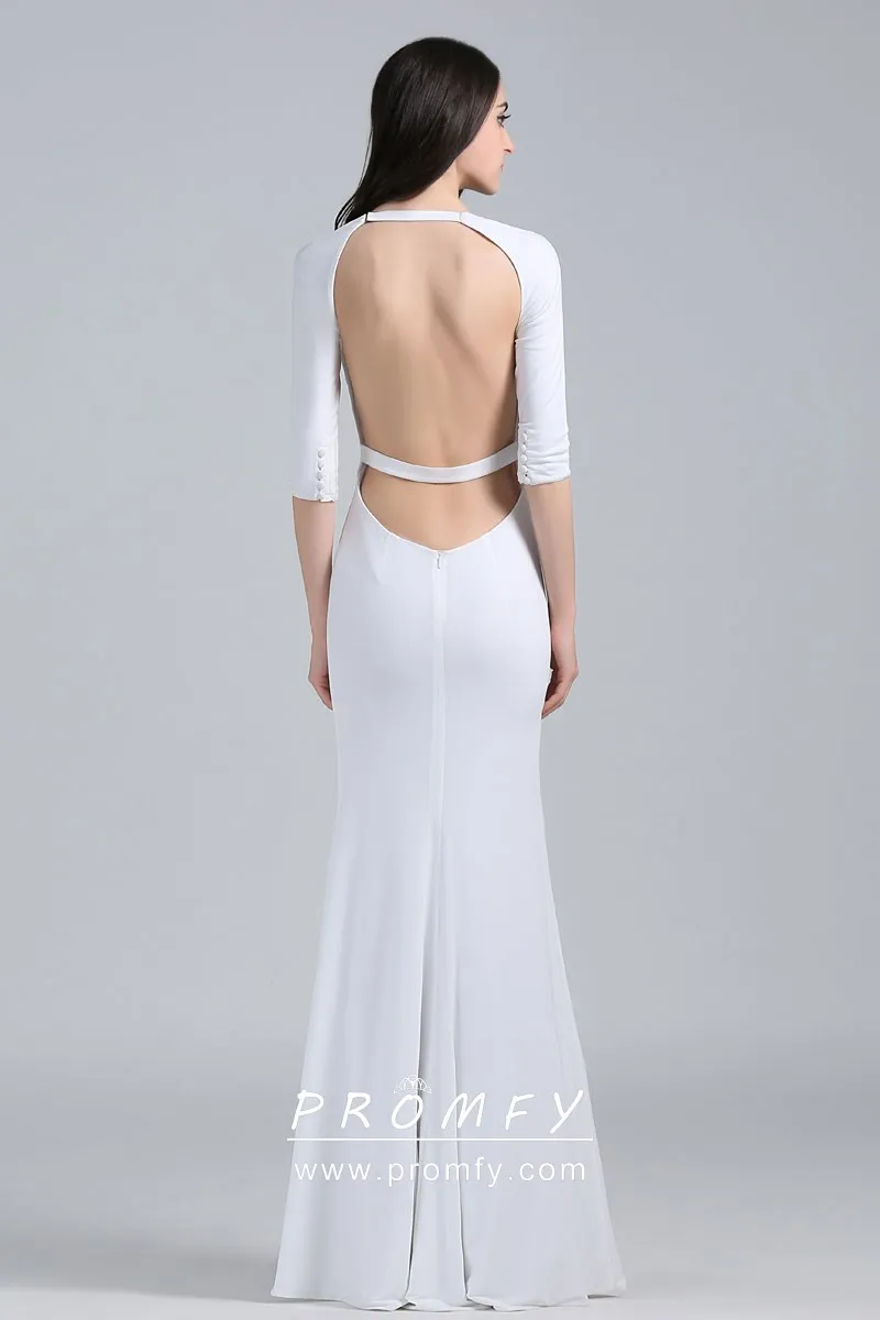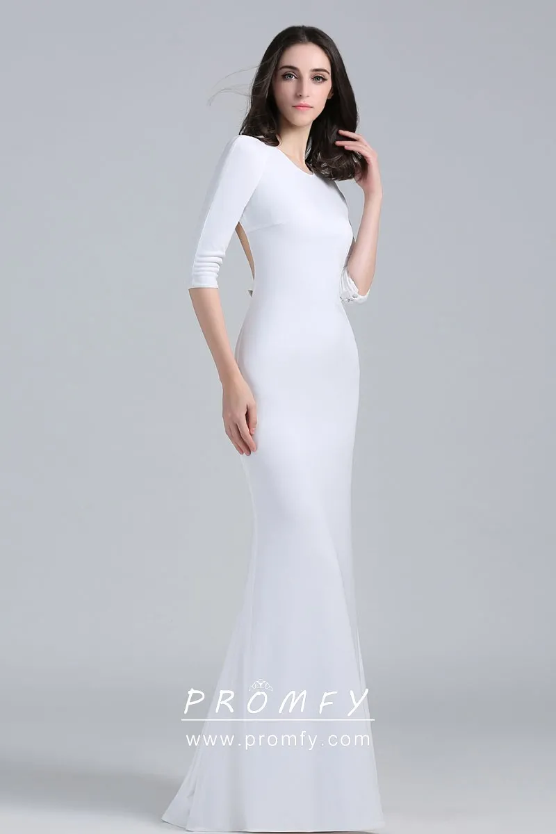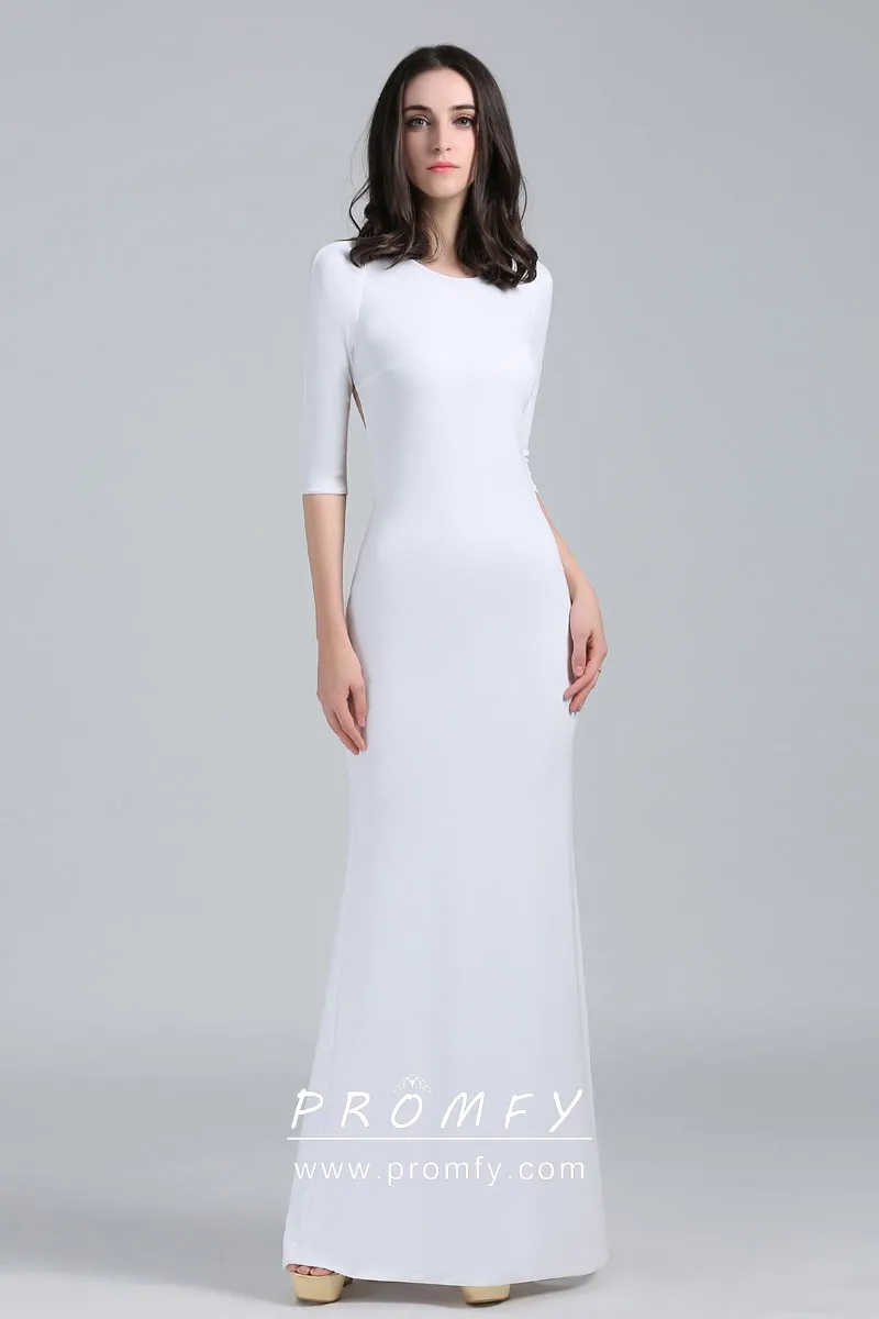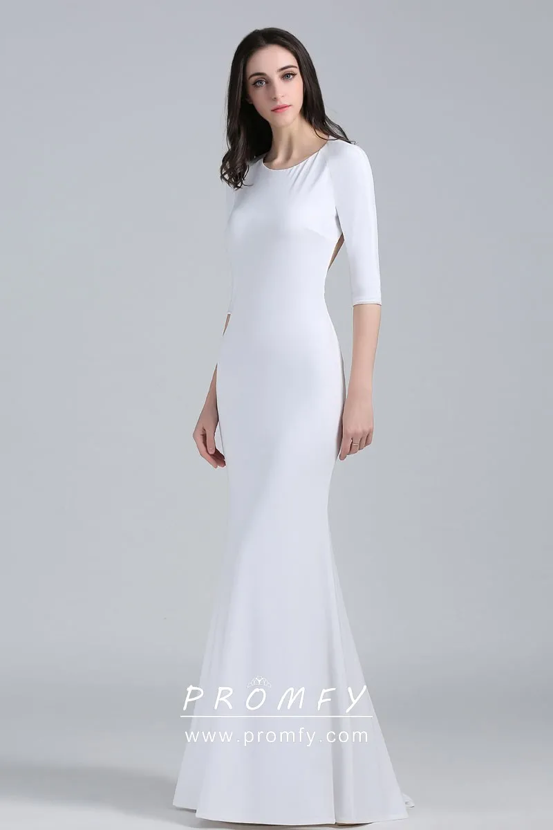 Jewel Neck Half Sleeve White Jersey Mermaid Dress