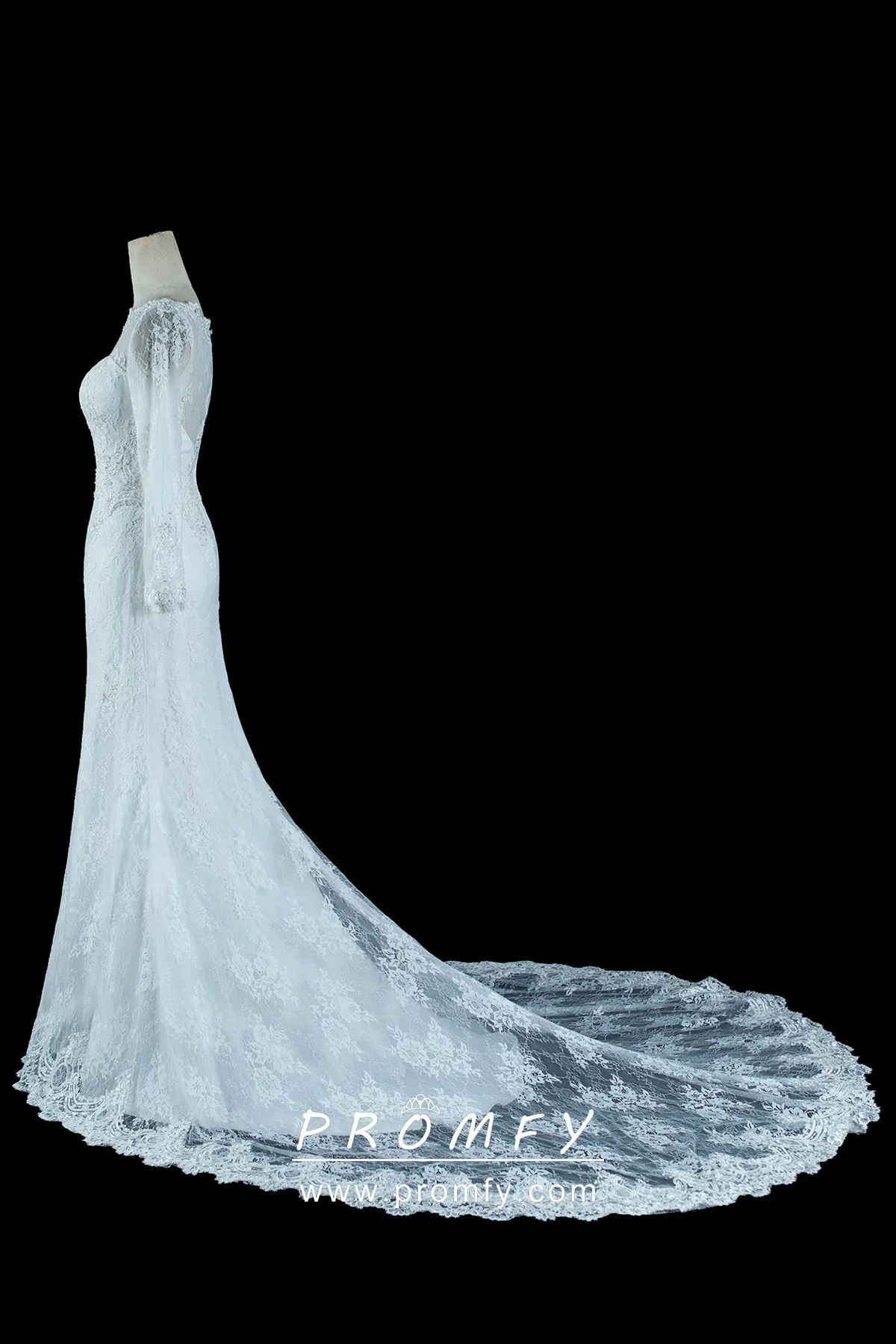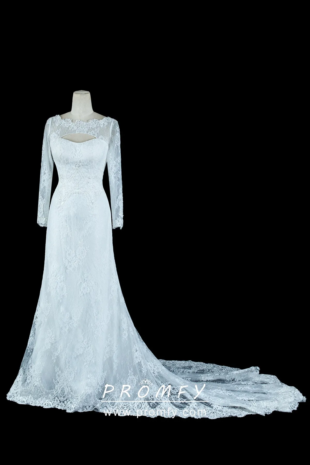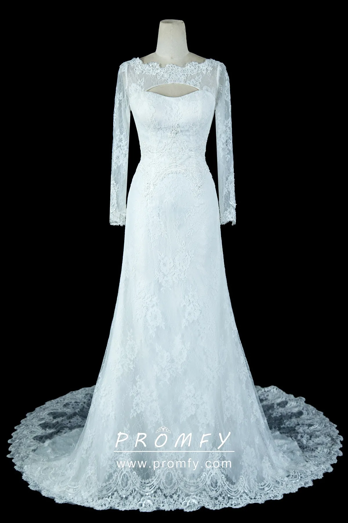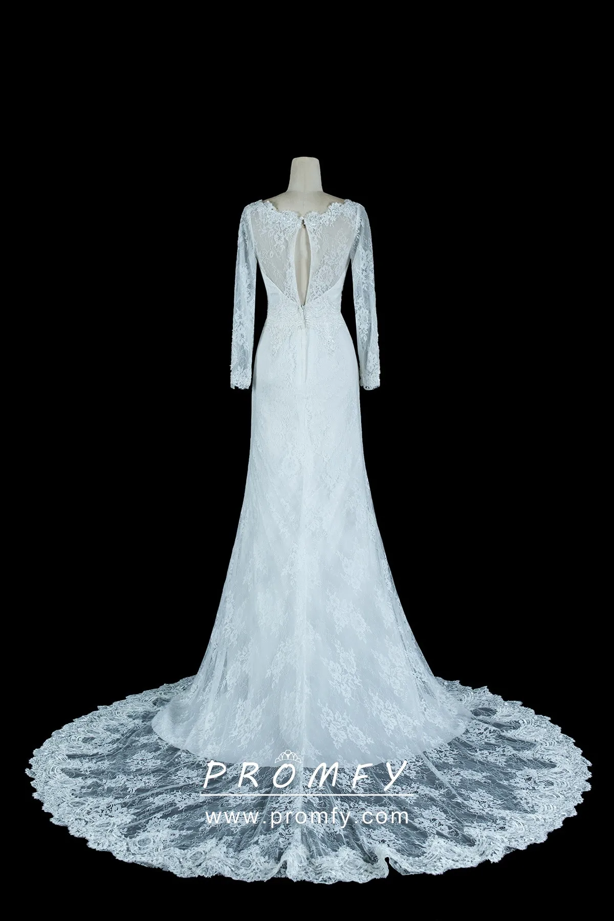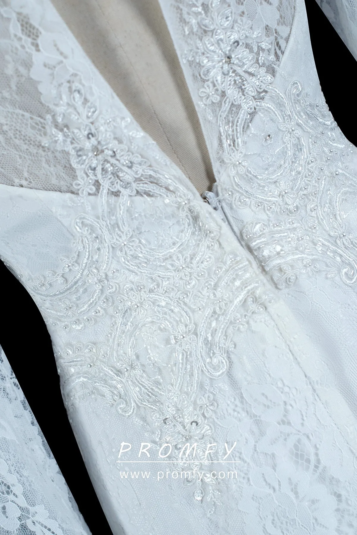 Illusion Neck & Long Sleeve Lace Long Wedding Dress