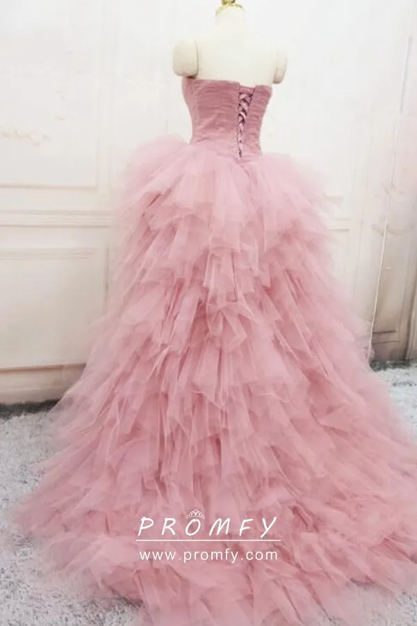 Candy Pink Tulle Ruffled High-low Cute Prom Dress