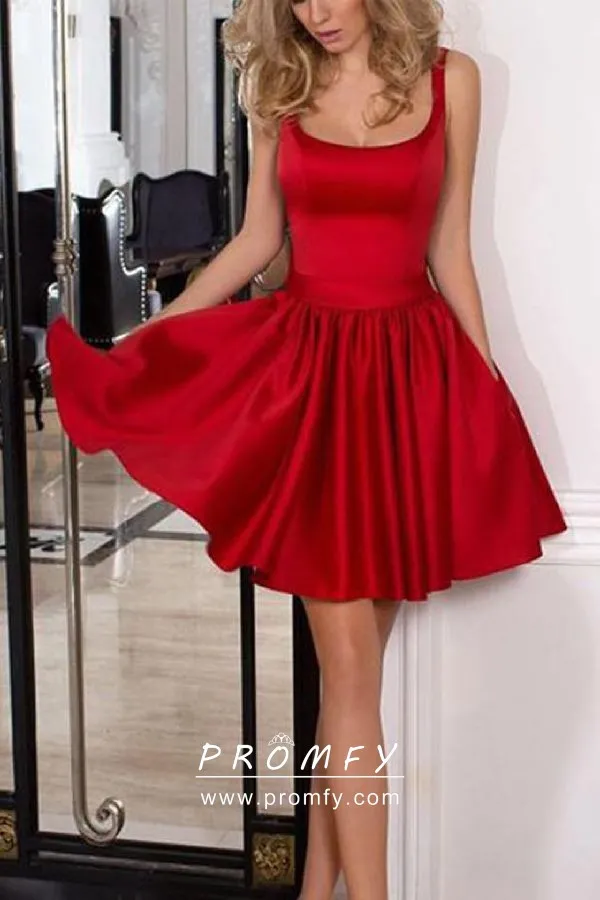 Pretty Red Scoop Neck Short Cocktail Party Dress