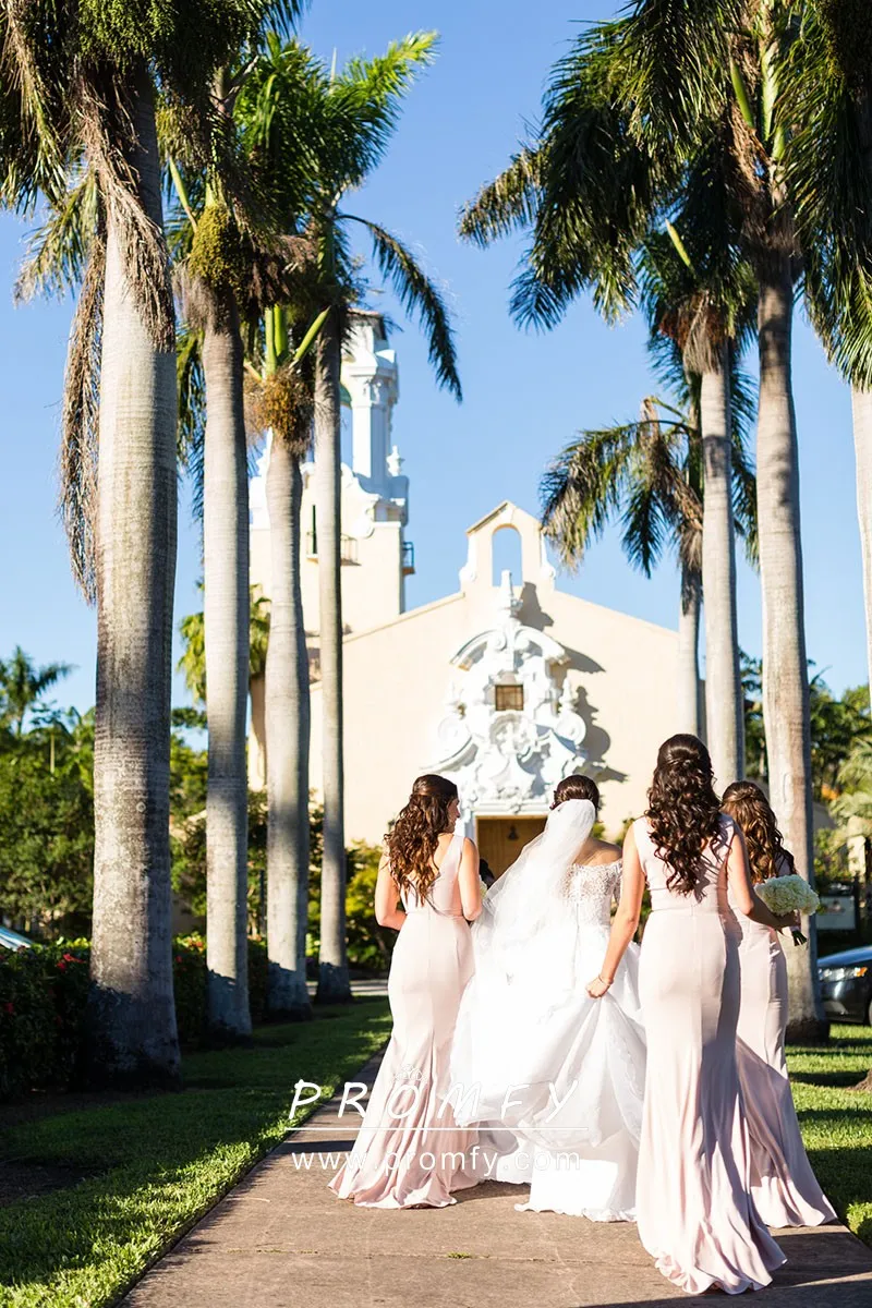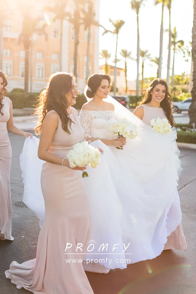 Simple Sleeveless Powder Mermaid Long Bridesmaid Dresses