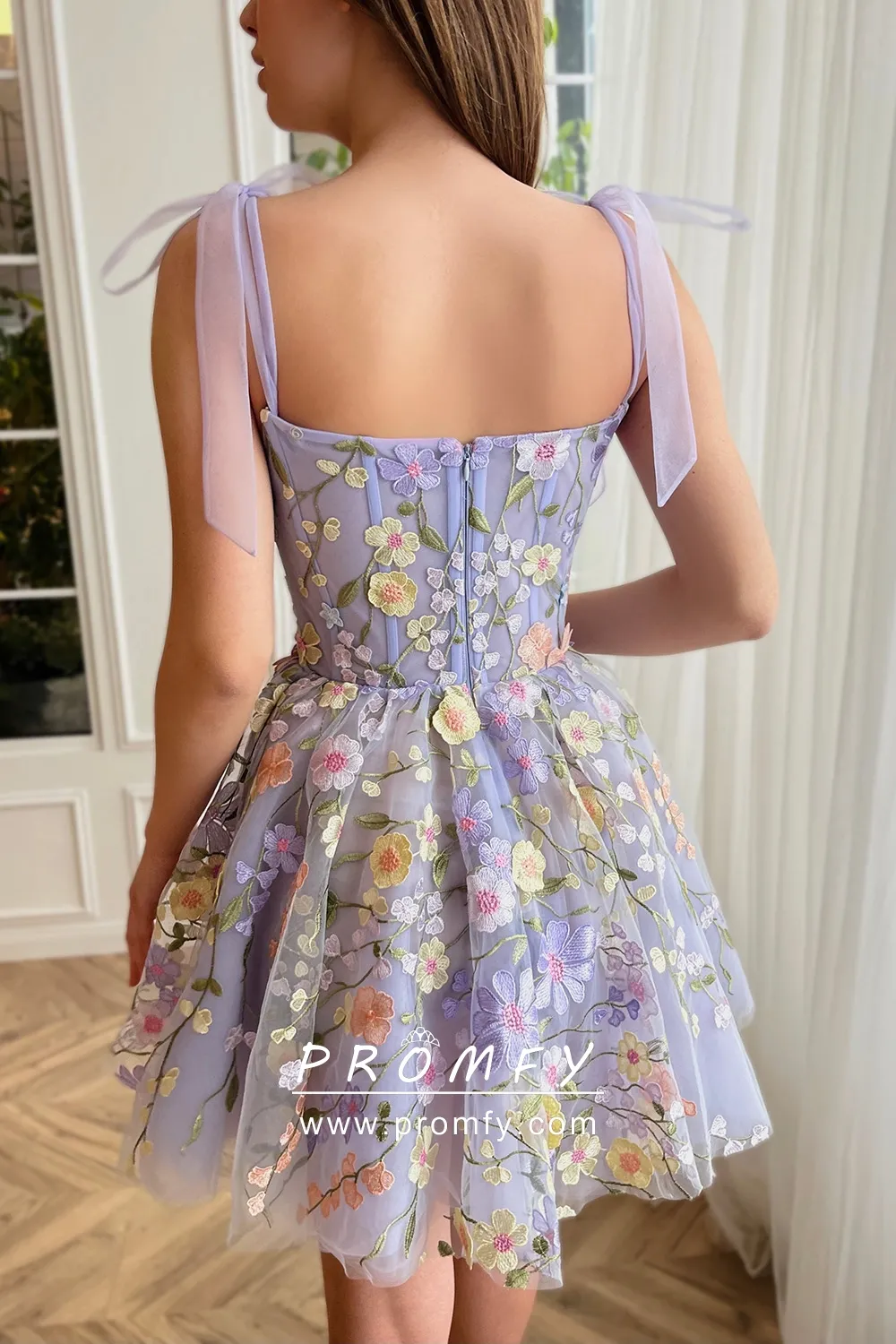 Wisteria Floral Lace Tie-Strap Short Homecoming Dress