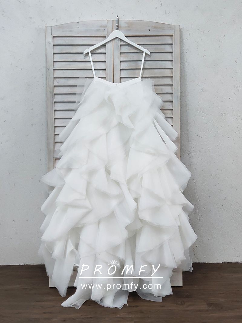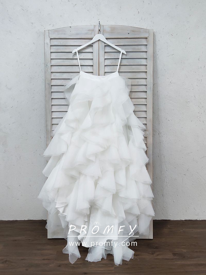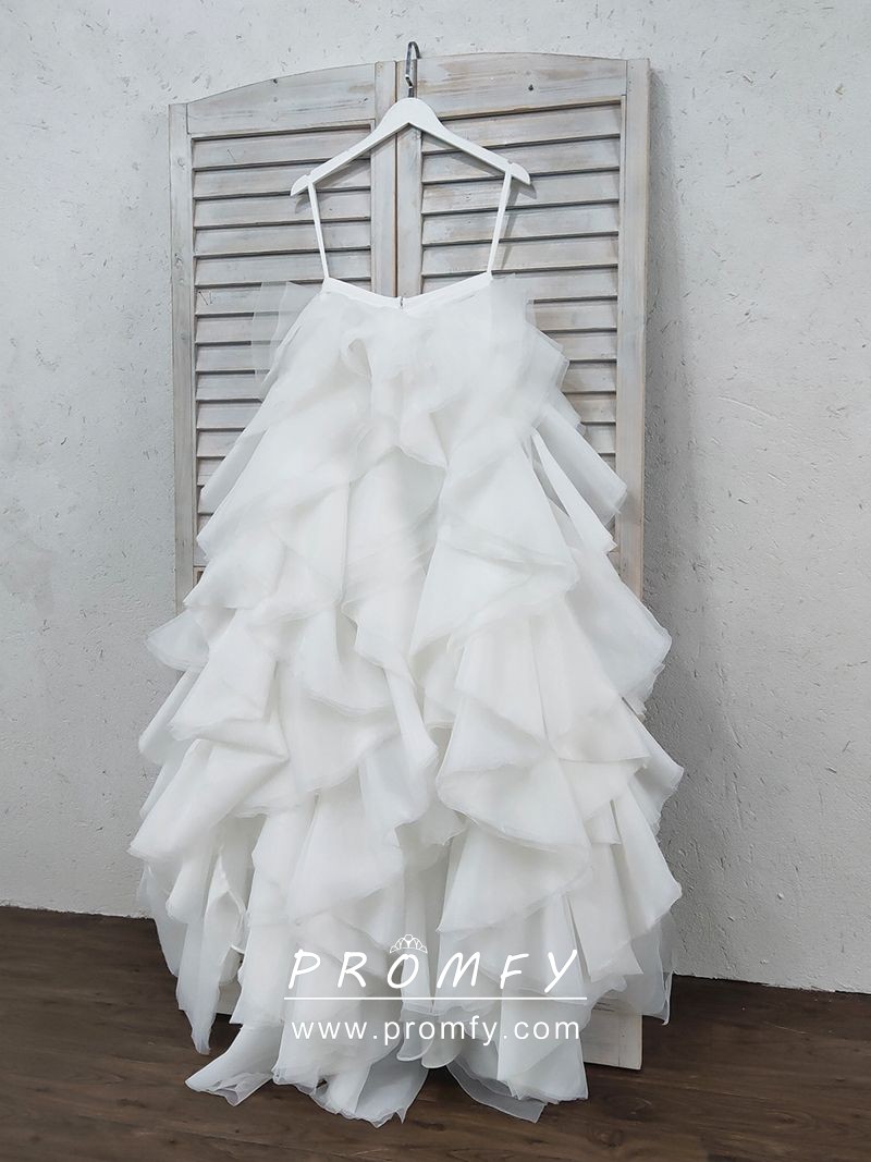 Promfy Ruffled White Organza Bridal Gown