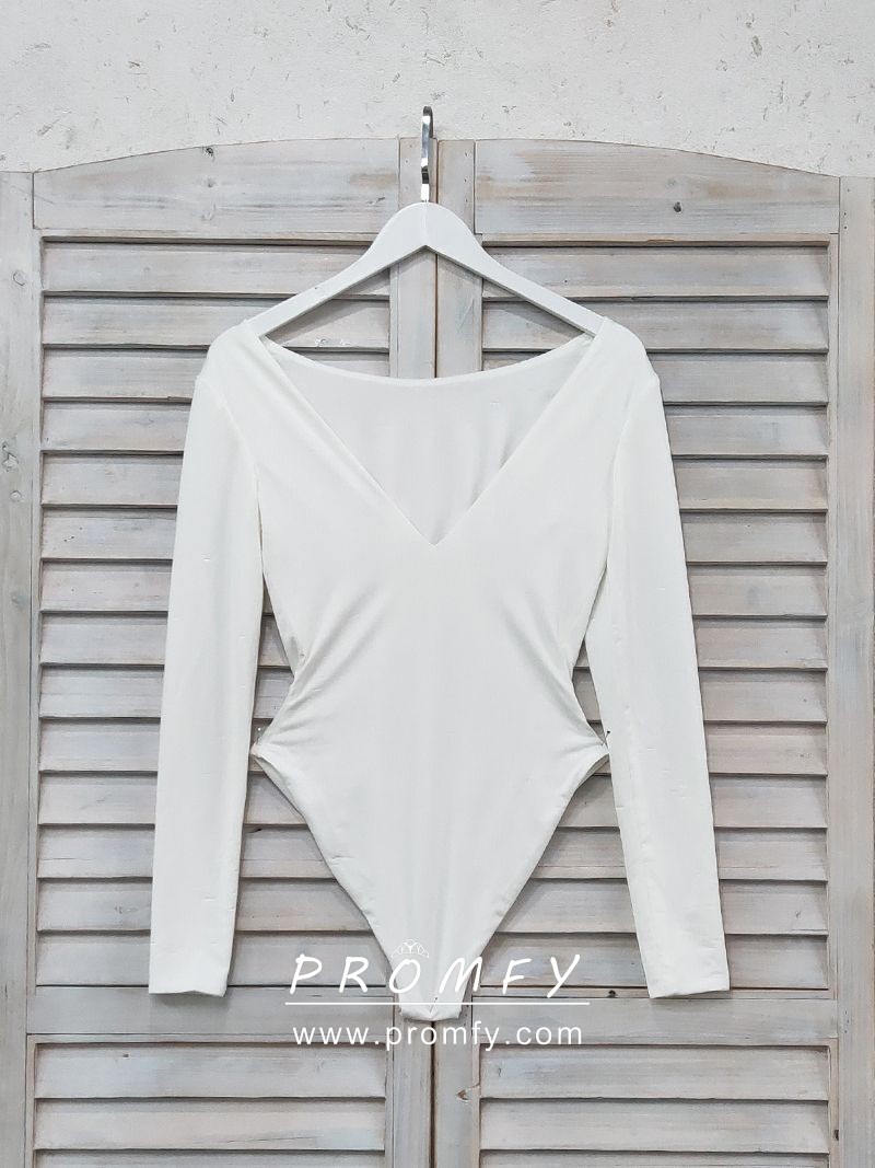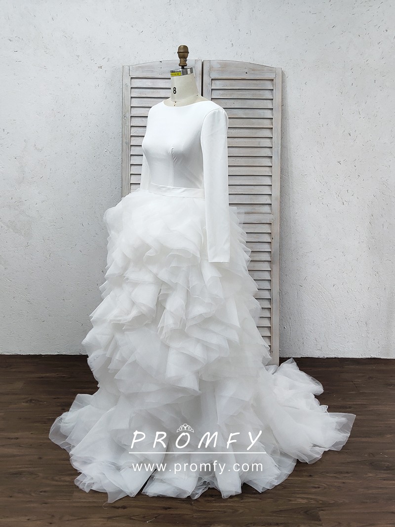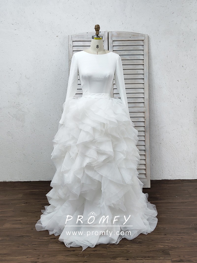 Ruffled Ivory Organza Jersey Sleeve Wedding Dress
